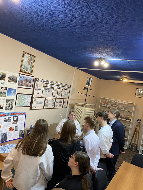 В полдень двери музея распахнули для учащихся 11-го класса МБОУ СОШ «Молочненская» в сопровождении социального педагога Абросимовой Елены Вадимовны. Ребята пришли на экскурсию уже с выбранным направлением жизненного пути. В рамках неформальной беседы с Почетным работником Гидрометеослужбы России Исаевой Светланой Григорьевной ребята поведали о своих желаниях и намерениях в получении дальнейшего высшего образования. Кто из учеников решил стать логопедом, кто инженером-строителем, кто биологом. По окончании знакомства Светлана Григорьевна, в рамках экскурсии, рассказала много интересного про погоду, климат, и, конечно, про ежедневный труд людей разных профессий, создающих ценнейший продукт под названием «Прогноз погоды». Было много эмоций, вопросов, и в итоге - раскрытых тайн и разгаданных загадок: экскурсия получилась на славу. По окончании столь познавательной экскурсии, будущие студенты задавали много вопросов про профессии гидролога, океанолога, геофизика и как добраться на труднодоступную метеорологическую станцию «Святой Нос». Очень надеемся, что в числе экскурсантов-одиннадцатиклассников были и наши будущие коллеги.